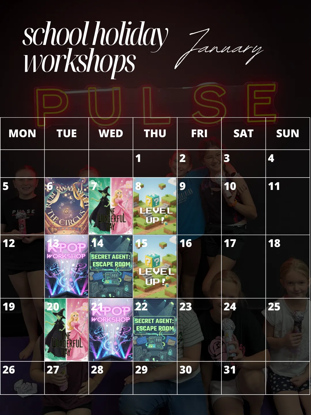 ✨ Check out the full details of each workshop below and find the perfect holiday fun for your child!